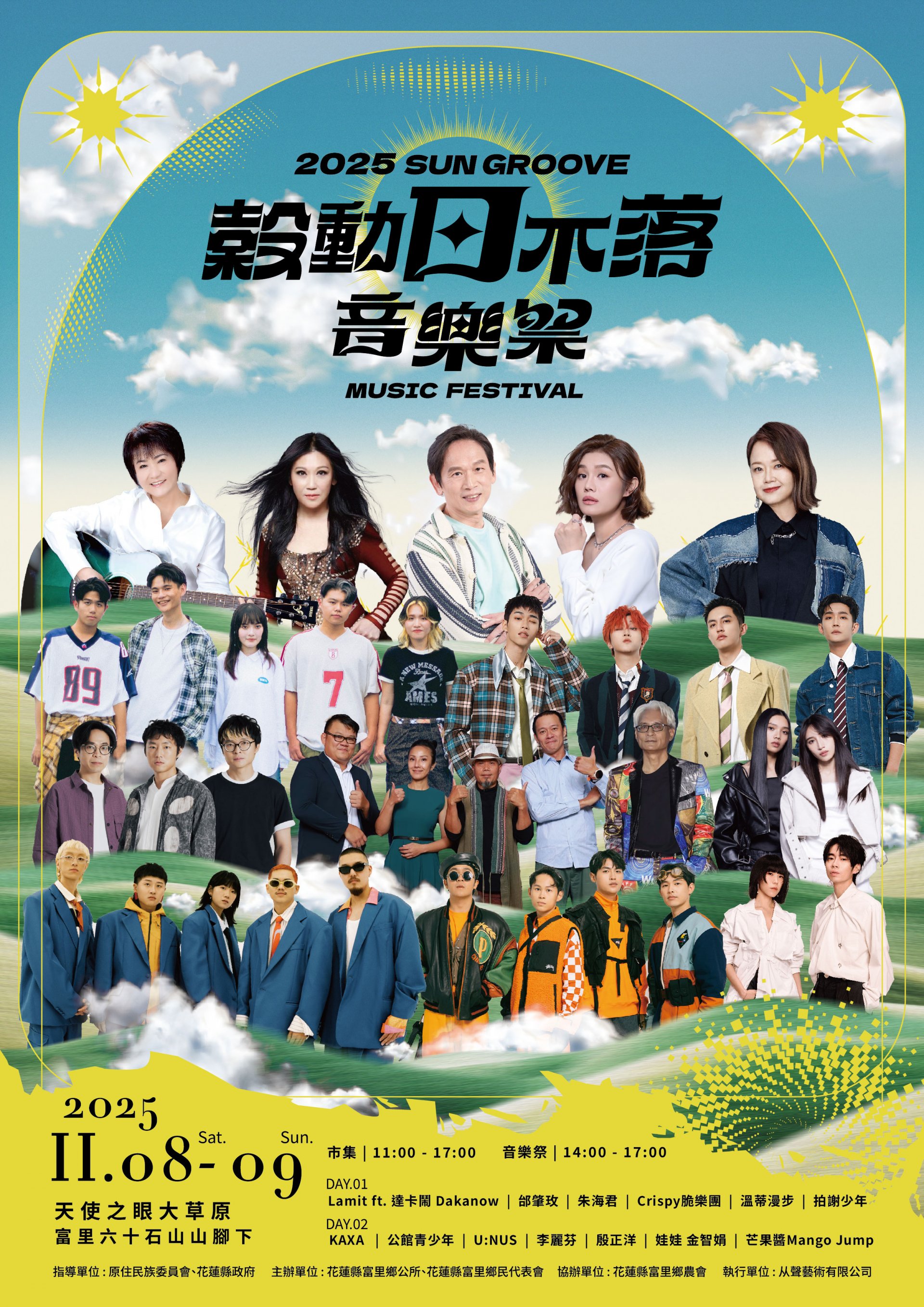 一、本活動訂於114年11月8日(星期六)及11月9日(星期日) 上午11時至下午5時,於本鄉天使之眼大草原(富里鄉六十 石山山腳下,Google Map搜尋:「穀動日不落音樂祭-活 動會場」)盛大舉辦。